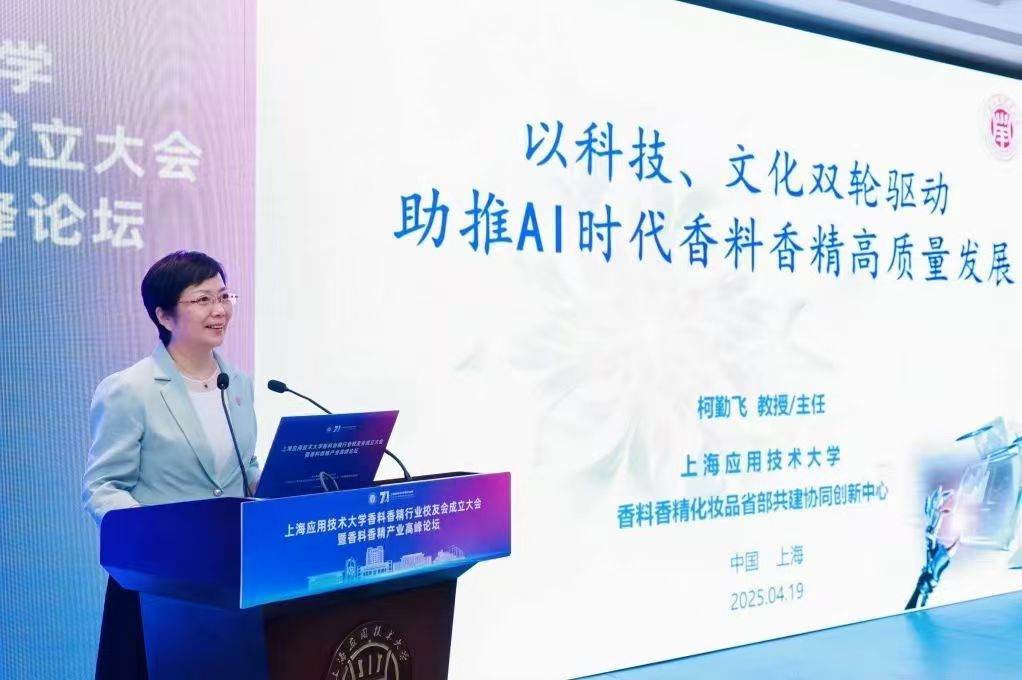 王来冬作题为《创新 规范 可持续发展——香料香精发展趋势》主旨报告,分析了当前行业面临的机遇与挑战并指出,企业需加快绿色转型,强化技术核心竞争力。柯勤飞以《以科技、文化双轮驱动助推AI时代香料香精高质量发展》为题,分享了中心在技术攻关、成果转化及校企合作方面的最新进展,强调协同创新对产业生态建设的重要性。