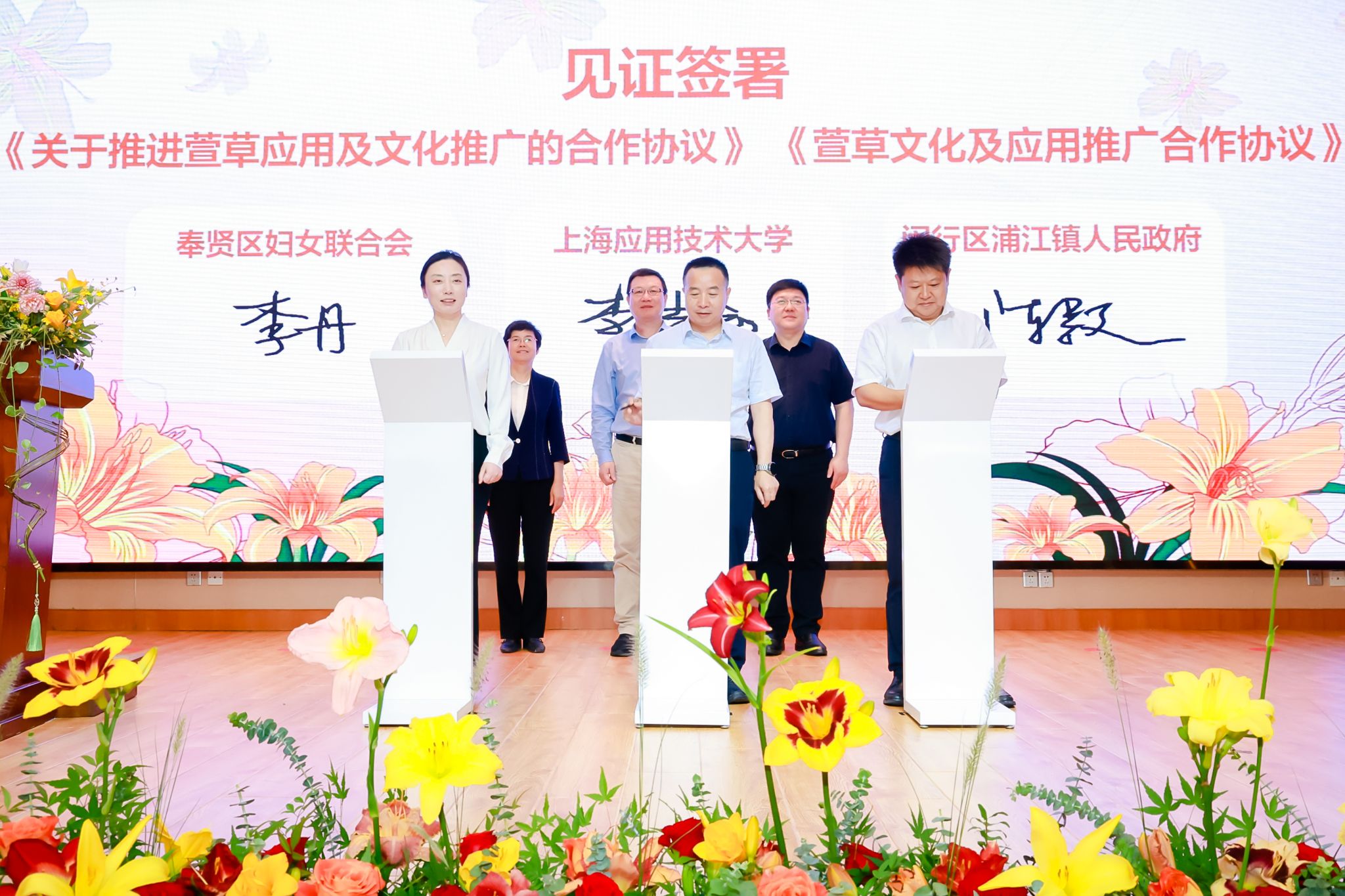 开幕式上,奉贤区妇女联合会主席李丹、上海应用技术大学生态技术与工程学院院长李法云、闵行区浦江镇副镇长陈跃签署了产学研合作协议。汪小帆、王淳、吉玉萍见证签约。